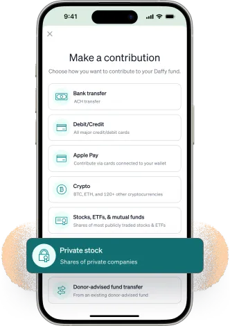 The vast majority of charities don’t accept private or publicly traded stock directly. With Daffy, you can contribute these assets easily and once liquid, donate to nearly any charity, school, or religious institution in the U.S., from one place.