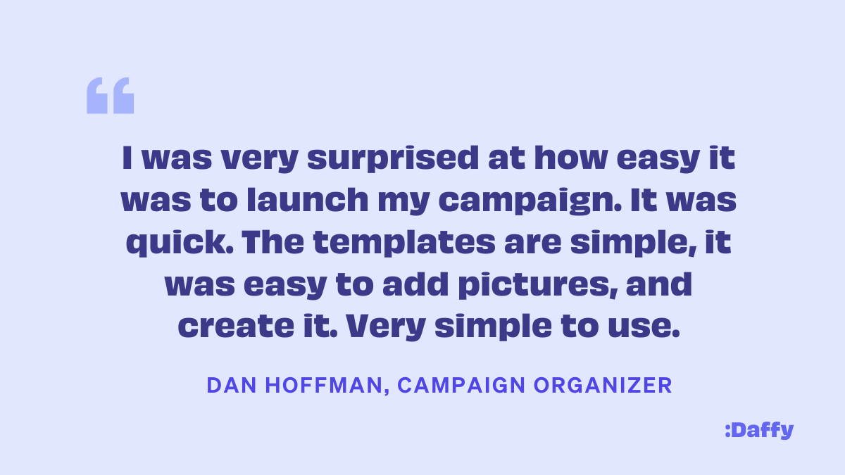 Prior to starting his fundraiser, there were five features that were essential to Dan and drove him to use Daffy Campaigns: