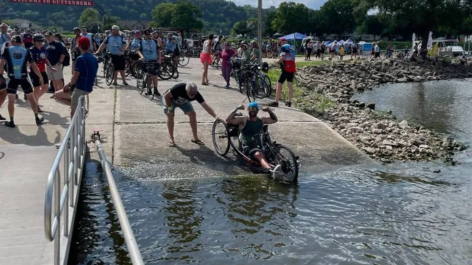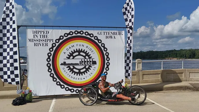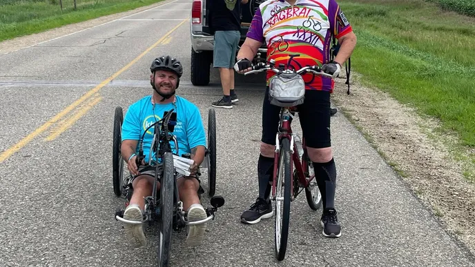 Daniel Mila, a single father, firefighter, athlete, and outdoorsman was paralyzed in a car accident in 2021. Despite this major setback he continues to work, takes care of his 10 year old son, coaches football, and leads an active life. He plays baseball, skis, and also loves to handcycle. He used one of our handcycles to ride across Iowa in the annual RAGBRAI ride, over 400 miles in 7 days. Unfortunately e-assist handcycles are very expensive and he needs your help to help him afford one.