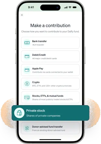 Even if private shares aren’t liquid yet, you can still donate them through a donor-advised fund (DAF) like Daffy. When you donate private stock to Daffy, the shares are not sold. Instead, the ownership of the shares is transferred to Daffy Charitable Fund.