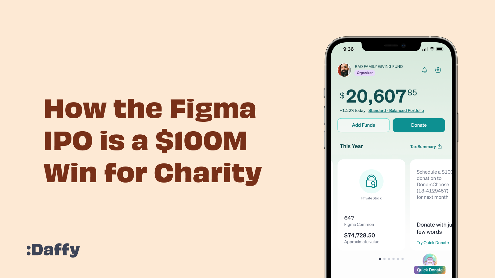 When Figma partnered with Daffy, they broke new ground. They made it possible for any employee to set aside a portion of their stock for charity. This approach not only encouraged generosity, it made it seamless and tax-efficient. The result? Millions unlocked for important causes.