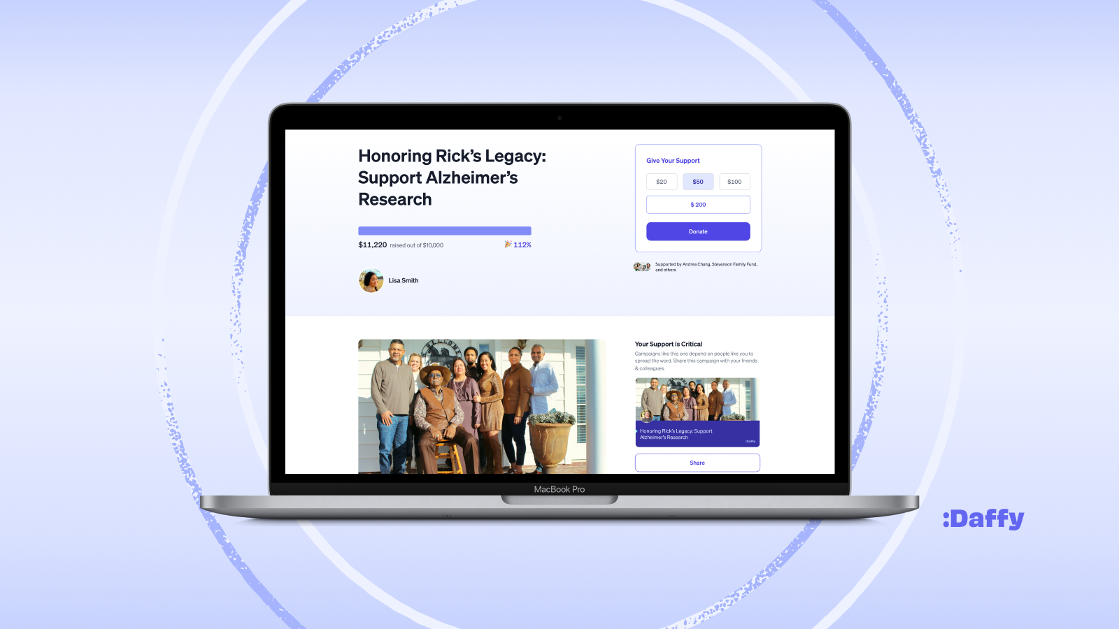 Since we launched Daffy Campaigns, one of the most common and meaningful fundraisers we’ve seen is in honor of loved ones who passed away. If you are reading this and have lost a loved one, please know that the entire Daffy team extends our deepest sympathies and support to you.