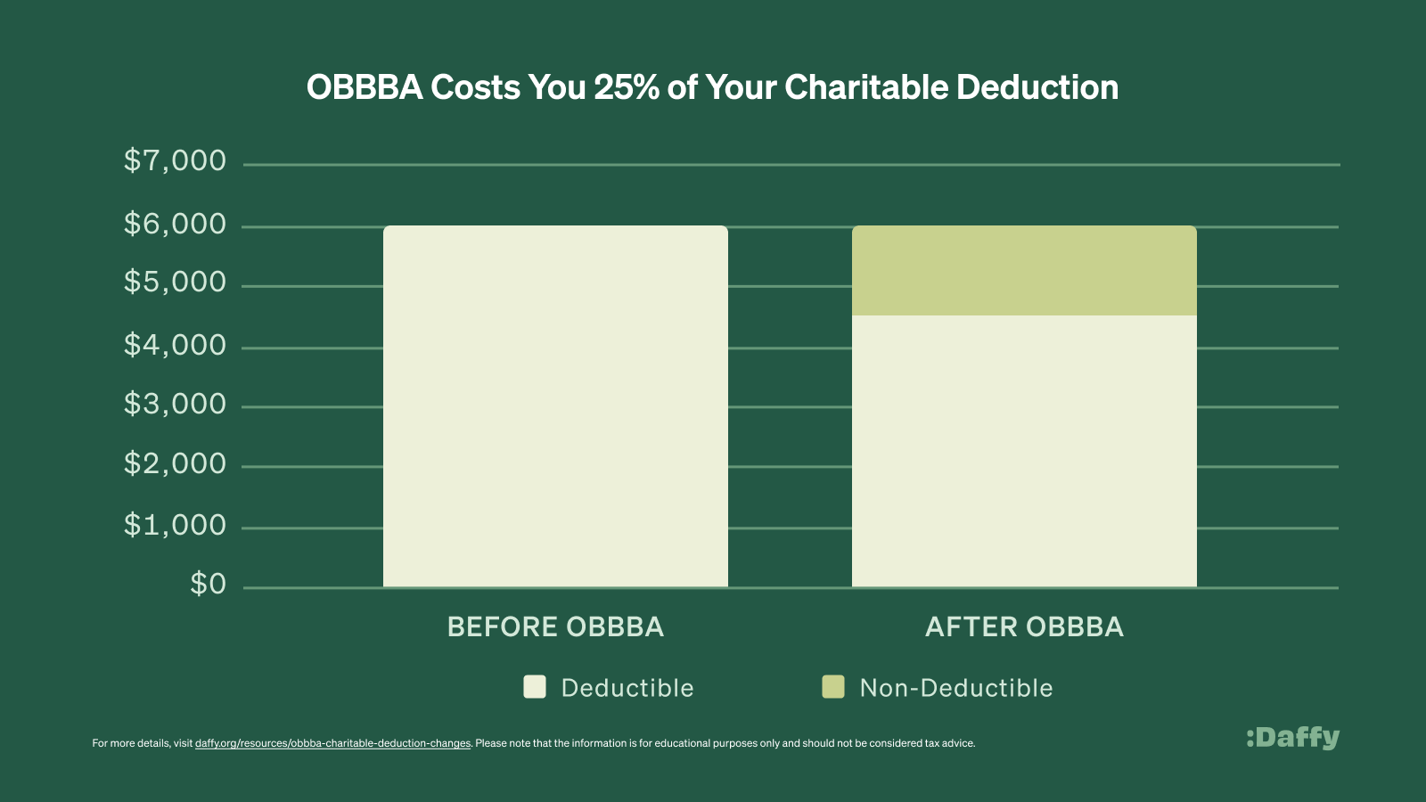 So while 0.5% might seem like a small number, it's a full 25% of what the typical household gives. And that means that a household might lose a large portion of their charitable tax deduction every year.