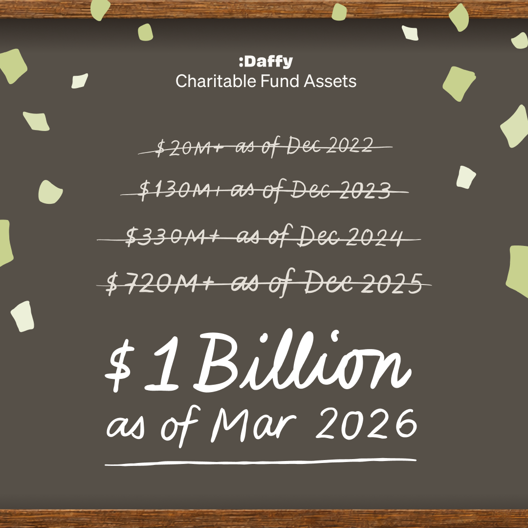 For every Daffy member who has been part of this journey, we want to thank you. You didn’t just open an account. You helped prove that a better donor-advised fund was possible. You showed up, and now the industry is paying attention.